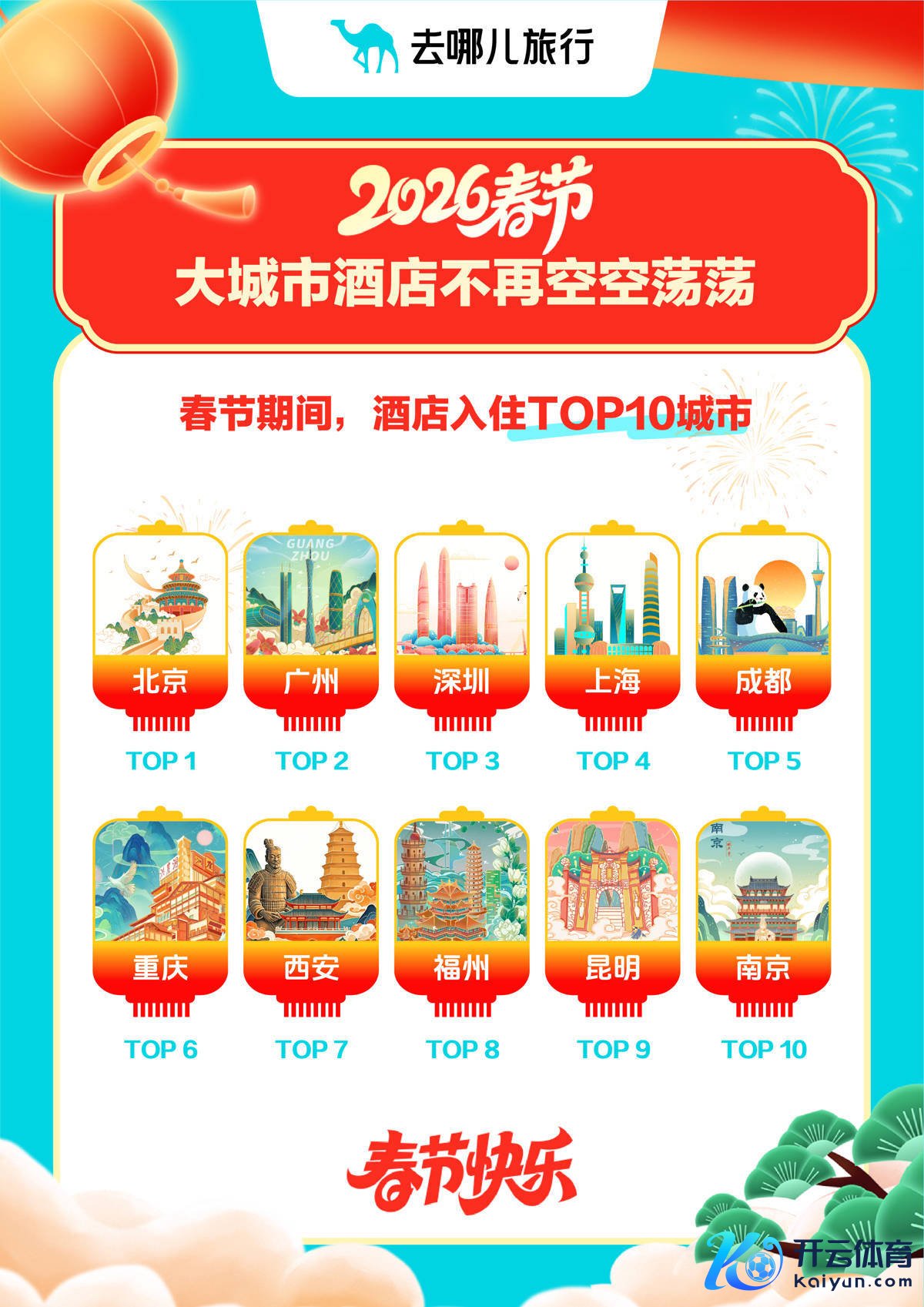 2026年春节,一线城市不再空荡荡。去哪儿旅行数据涌现,收尾现在,春节假期货仓预订量最高的城市中,北京、广州、深圳、上海名次前四,其中广州货仓预订量同比增长35%,深圳增长48%。此外,成齐、重庆、西安、福州、昆明、南京,货仓预订量也位于寰宇TOP10。