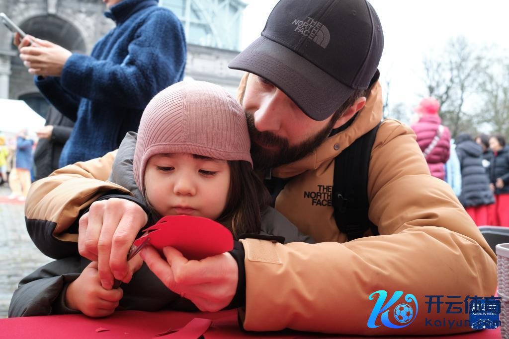 1月25日,东谈主们在比利时皆门布鲁塞尔举行的“中国春节游园庙会”活动上体验剪纸。
