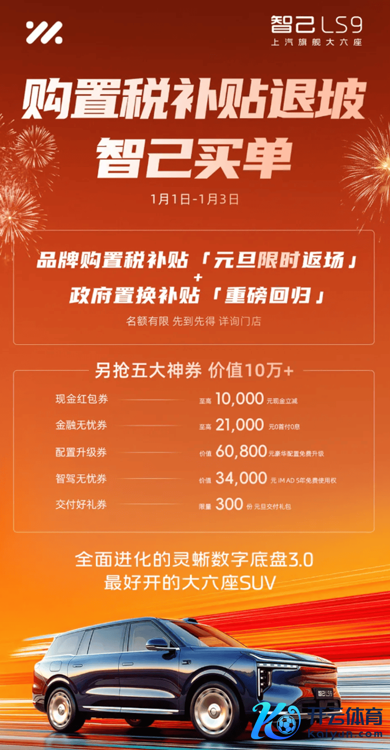 官方暗示1月1日-1月3日,智己推出品牌购置税补贴「元旦限时返场」和政府置换补贴「重磅转头」。同期,可抢超价值10万元的五大神券。