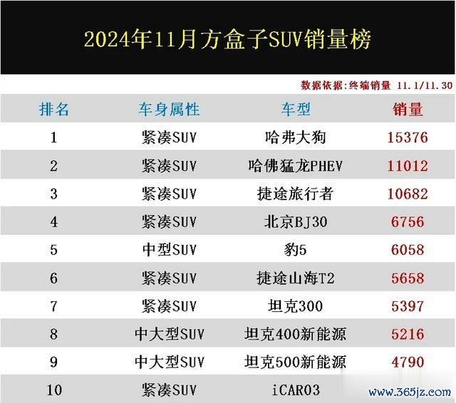导读:2024年11月方盒子SUV销量排名榜已恰当公布!大赢家实属哈弗大狗,销量断崖式跨越,捷途旅行者潜力略显不及,豹5稳居前五,iCAR03拼凑入围榜单前十,北京BJ60已跌至20名开外。依据“结尾销量”数据流露,11月份共统计了26款车型,但仅有三款销量超万辆,哈弗大狗进展亮眼夺得头牌,哈弗猛龙PHEV荣获亚军,捷途旅行者退居第三,北京BJ30,豹5皆位居前五,捷途山海T2,坦克300,坦克400新动力,坦克500新动力,iCAR03均入围榜单前十名,豹8高潮至第十二,北京BJ80进展低迷,仅售出了4辆!