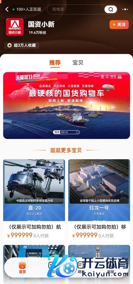 国资小新淘宝店负责东说念主先容,本年天猫“双11”,在淘宝链接展示中央企业既能打造大国重器“国度柬帖”,也有个别大国重器适合奏凯上架出售的条款。同期,一些央企会在国资小新淘宝店上架时刻和材料过硬的“低调国货”,“主淌若让行家感受到,大国重器既顶天赶紧、又能保险和改善民生的牵涉担当。