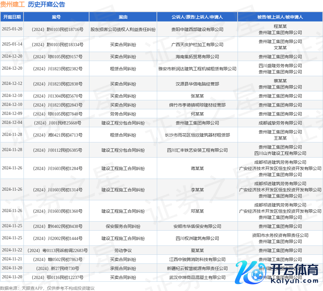 本站音讯,凭据天眼查APP浮现,近日公布了一则贵州建工集团有限公司算作原告/上诉东谈主的开庭公告开云体育,精良本色如下: