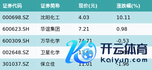 狂放收盘欧洲杯体育,丙烯酸主题涨跌幅最高的五只股票为:沈阳化工(000698.SZ)、华谊集团(600623.SH)、万华化学(600309.SH)、卫星化学(002648.SZ)与保立佳(301037.SZ)。笃定见下表: