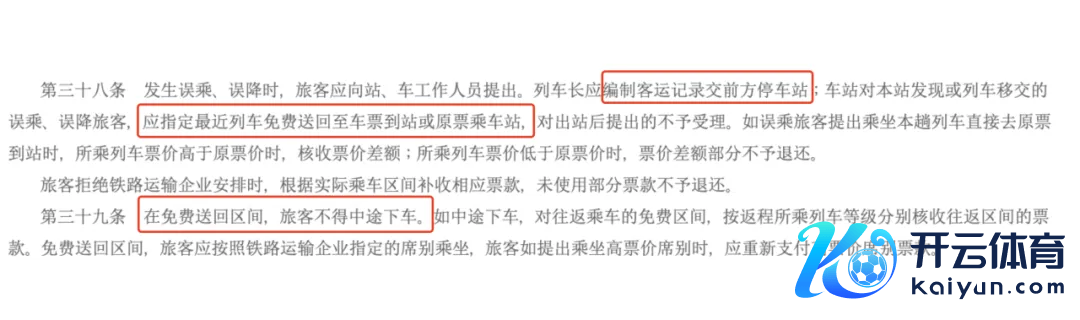 《铁路搭客运输规程》第三十八、三十九条法例:发生误乘、误降时,搭客应向站、车责任主说念主员建议。列车长应编制客运纪录交前哨泊车站;车站对本站发现或列车吩咐的误乘、误降搭客,应指定最近列车免费送回至车票到站或原票搭车站。