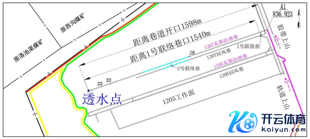 (4)未严格探放水超前距管控。地测部和掘进队组违抗国度局《对于印发陈腐羁系煤矿水害事故多少次序的告知》第六条、《山西省煤矿老空水害防治责任法规》第三十三条、《山西省煤矿防治水“三专两探一撤”法规》第十九条的法规,未严格在允许掘进告知单明确的边界内进行掘进功课,按支护排距、数目估算巷谈进尺存在严重错误,掘进队上报退换指令中心的班后请问表及掘进责任面现场“有掘必探”(探放水)照应牌板纪录错误。