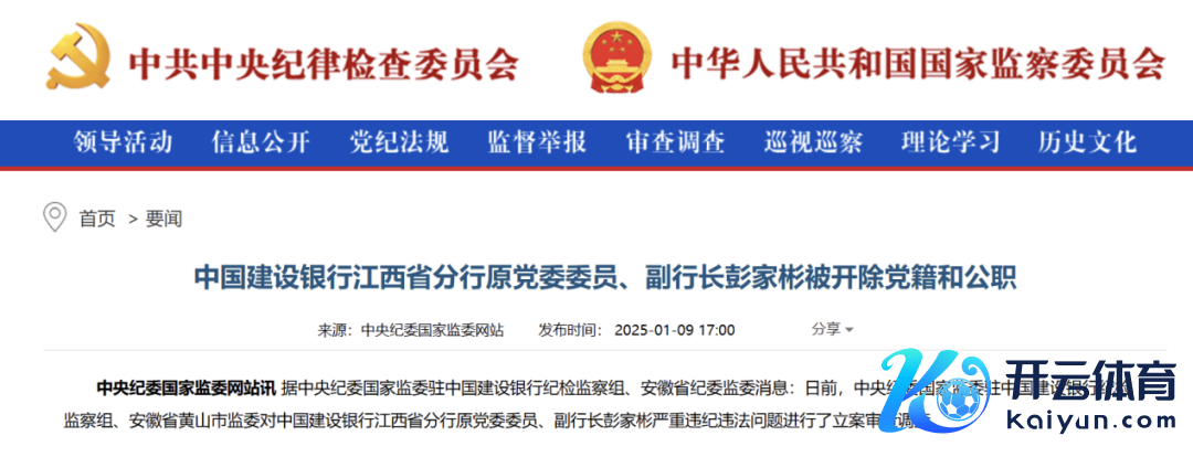 1月9日,中央纪委国度监委官网通报:中国诞生银行江西省分行原党委委员、副行长彭家彬被开除党籍和公职。
