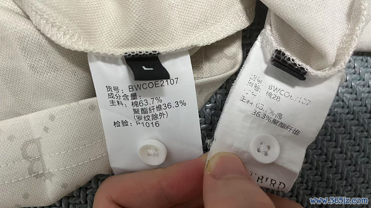 周先生说,他因自己责任关联,不可穿得过于闲逸,polo衫相对来讲相比相宜责任需要,他每年会在太平鸟购买三到四次一稔,是该品牌的最高等会员。他此前购买的那件太平鸟polo衫平常很少穿,新一稔到货后他试穿时发现衣领处的字母别针“B”,这让他思起了旧年能够买过一件差未几口头的,并产生了怀疑,流程对比后发现太平鸟官方旗舰店拿旧款当新款卖。
