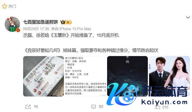 有姊妹篇在前边打样,《玉簟秋》这部作品的热度天然不缺。目下网传的丞磊和徐若晗亦然崭新组合,应该会碰撞出火花。 但不少网友照旧更期待之前的网传女主卢昱晓,有“夜色尚浅CP”的热度托底,如今再次配合若何不算是顶峰相遇?