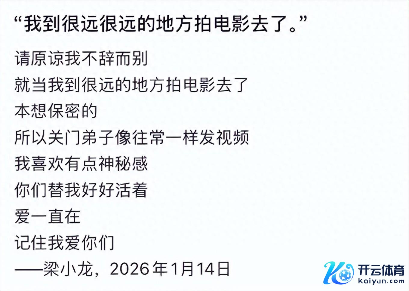 更让东说念主以为朦胧的是,在他走后,他的抖音账号还在合手续更新,一连发了好几条他生前练功、生计的视频,致使有一条规案写着“我到很远很远的处所拍电影去了”。