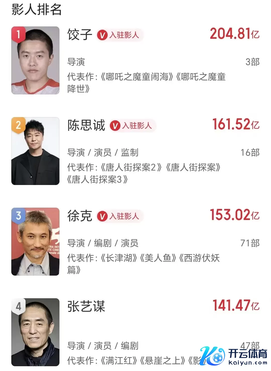 最初,张艺谋会逾越徐克,成为中国执导电影第三高的导演。当今张艺谋执导电影的总票房是141.47亿东谈主民币,位居第四名,比第三名的徐克只少了11亿东谈主民币。