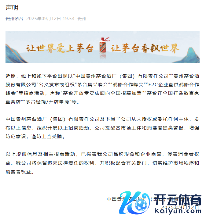 茅台集团:未授权或奉求任何主体发布或组织“茅台集采峰会”等招商活动茅台集团:未授权或奉求任何主体发布或组织“茅台集采峰会”等招商活动