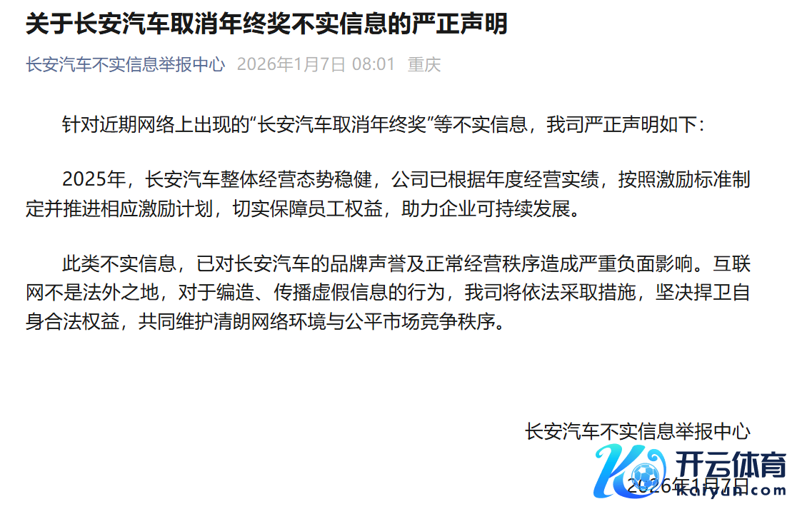 长安汽车:网传“取消年终奖”信息装假 已鼓励引发计较保险职工权益开云体育(中国)官方网站长安汽车:网传“取消年终奖”信息装假 已鼓励引发计较保险职工权益