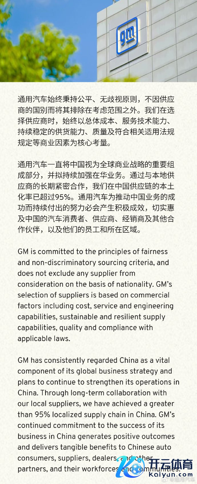通用汽车:公司在中国供应链的原土化率已跨越95%通用汽车:公司在中国供应链的原土化率已跨越95%