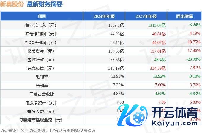 据证券之星公开数据整理,近期新奥股份(600803)发布2025年年报。适度本敷陈期末体育游戏app平台,公司营业总收入1315.07亿元,同比下落3.24%,归母净利润46.81亿元,同比高潮4.19%。按单季度数据看,第四季度营业总收入356.14亿元,同比下落4.09%,第四季度归母净利润12.56亿元,同比高潮25.29%。本敷陈期新奥股份公司应收账款体量较大,当期应收账款占最新年报归母净利润比达103.38%。 该数据低于大无数分析师的预期,此前分析师广大预期2025年净利润为盈利5